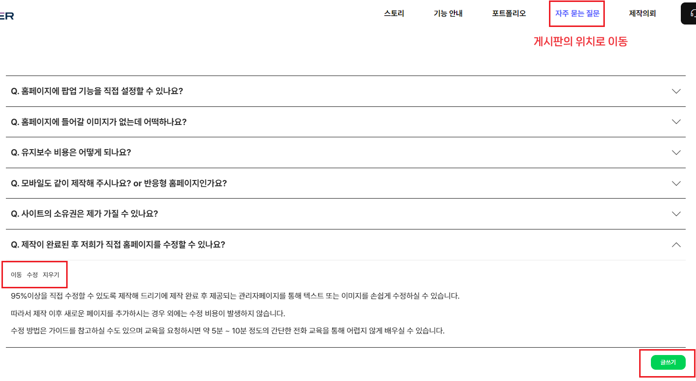 현재 제작이 완료된 사이트는 작업을 위해 저희가 결제해 드린 기간이 남아있지만,