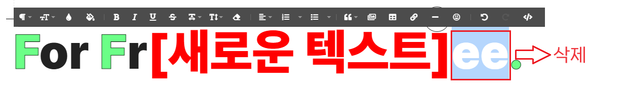 따라서 텍스트 사이에 원하는 내용을 입력하신 뒤 기존 내용을 삭제하셔야 양식이 빠지지 않습니다.