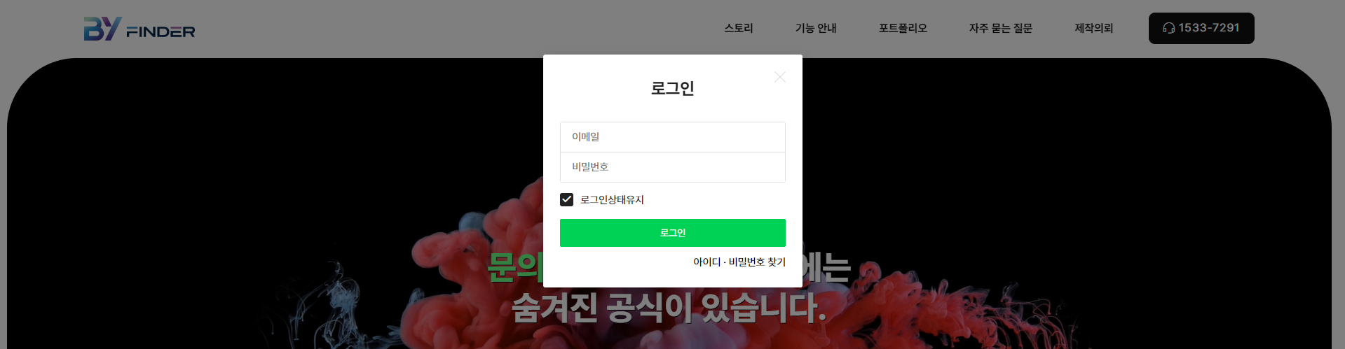 ※ [by-finder.com]에 위치에 가입하신 [전달 받으신 웹사이트 주소]를 입력하셔야 합니다.